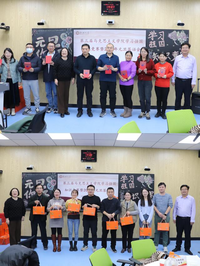 为深入学习宣传贯彻习近平新时代中国特色社会主义思想和党的二十大精神,引导广大师生自觉学理论、长知识、强本领,12月28日,色情短视频 第三届学习强国知识竞赛暨2024年元旦茶话会在东校区6号楼a101室举行,色情短视频 党委书记张华筠、院长刘子平及各教研室党支部教师欢聚一堂,热情迎接新年的到来。